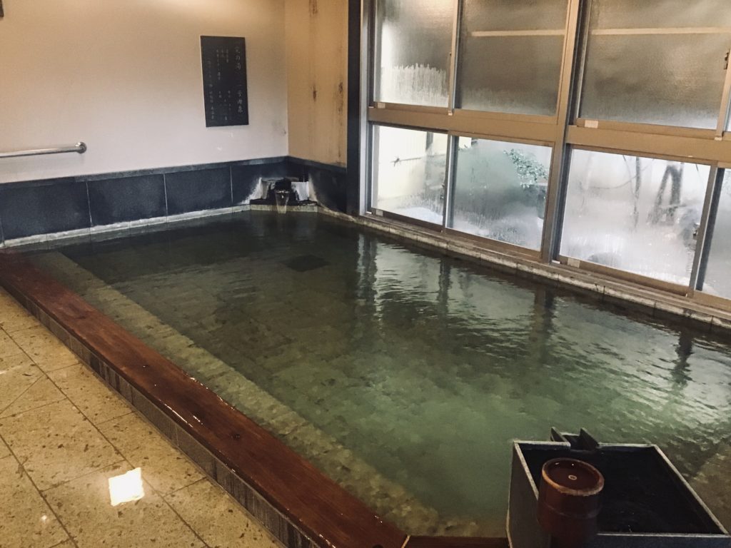 ちなみにこちらが朝に撮影した「柿の湯」の内湯です。浴槽内を通過して露天風呂へ進みます。