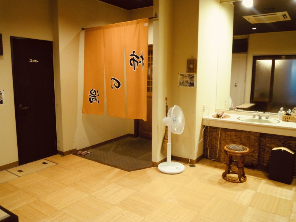 そして「柿の湯」です。19時30分〜チェックアウトの10時迄、女湯になります。「もも湯」は男湯になりました。脱衣所内にトイレ、洗面所、ドライヤーもあります。