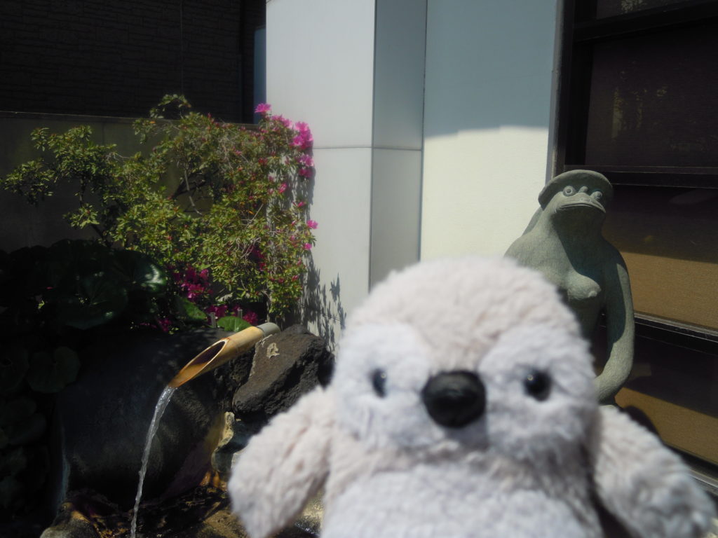 玄関前にある飲泉所にて、源泉をお土産に頂きます。誰でも汲んでOKとの事、温泉への愛情とサービス精神が伝わります。近所の方は羨ましいですね!