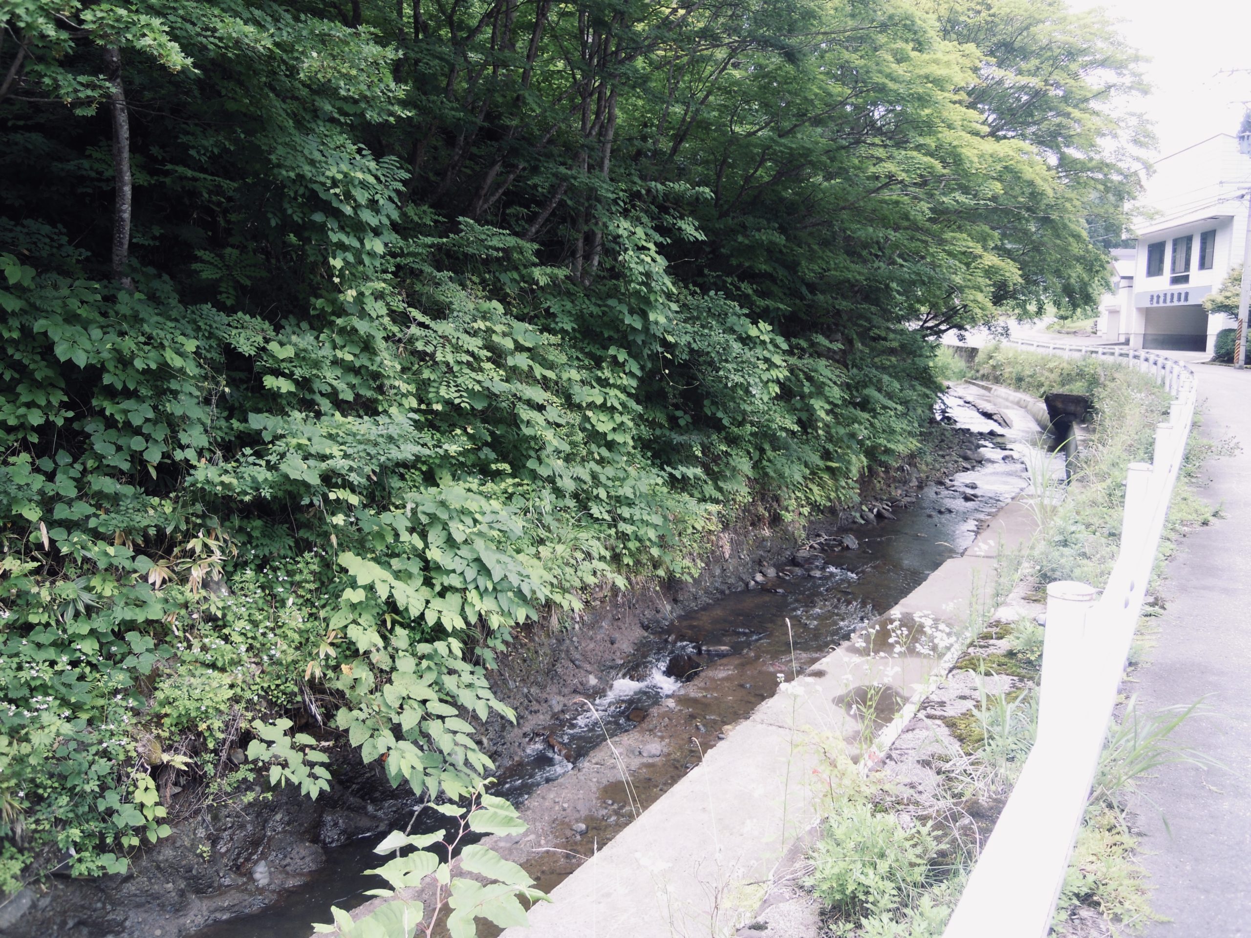 窓の外には川が流れています。カジカガエルの鳴き声が聞こえてきます。椅子に座ってボーッとしていたら、タッタカ、タッタカと足音が。窓の外を見ると、すぐ前の道路をカモシカが走り去って行きました。
