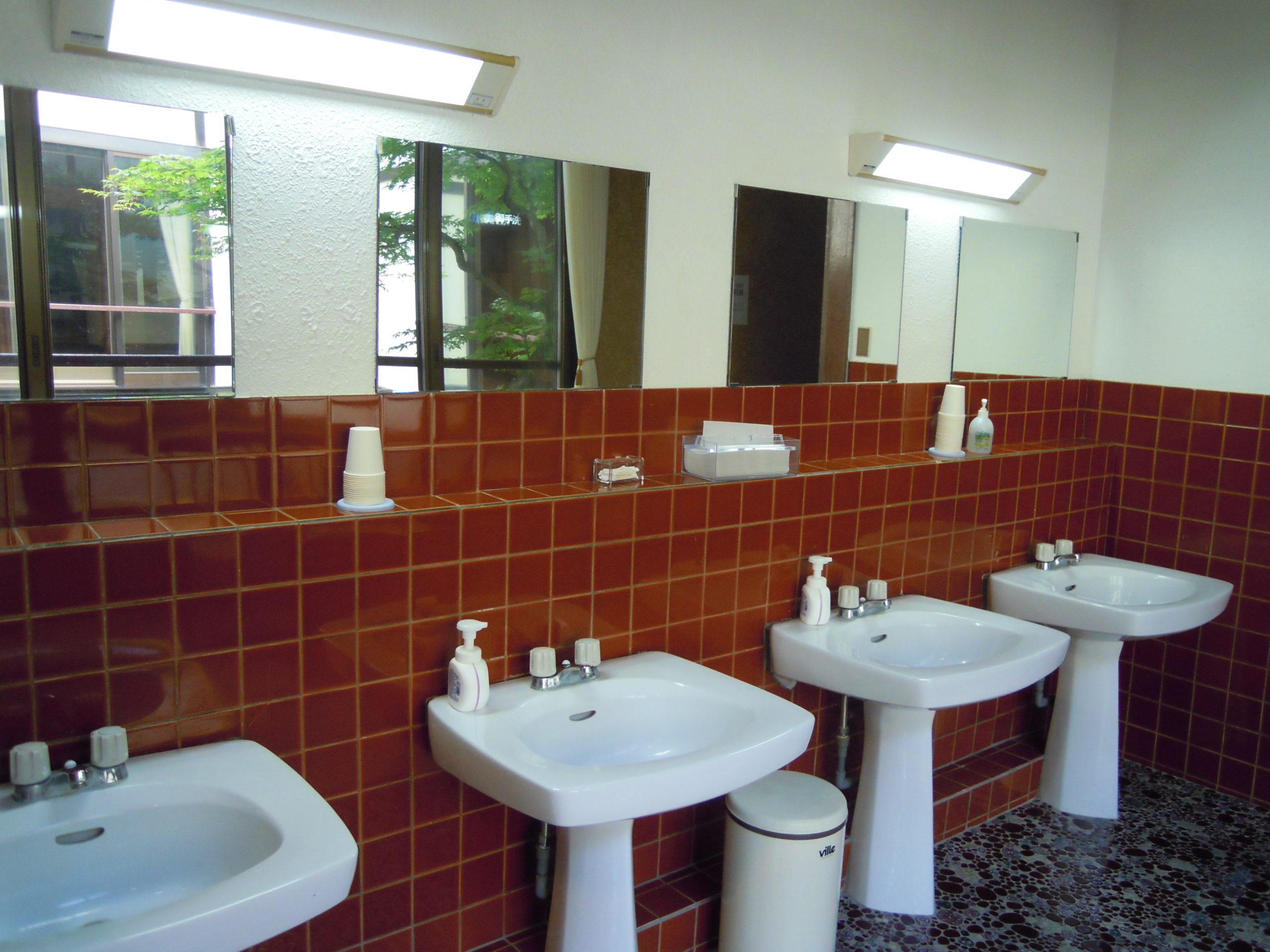 大浴場の手前にトイレがあり、洗面所があります。トイレは綺麗な洋式トイレです。