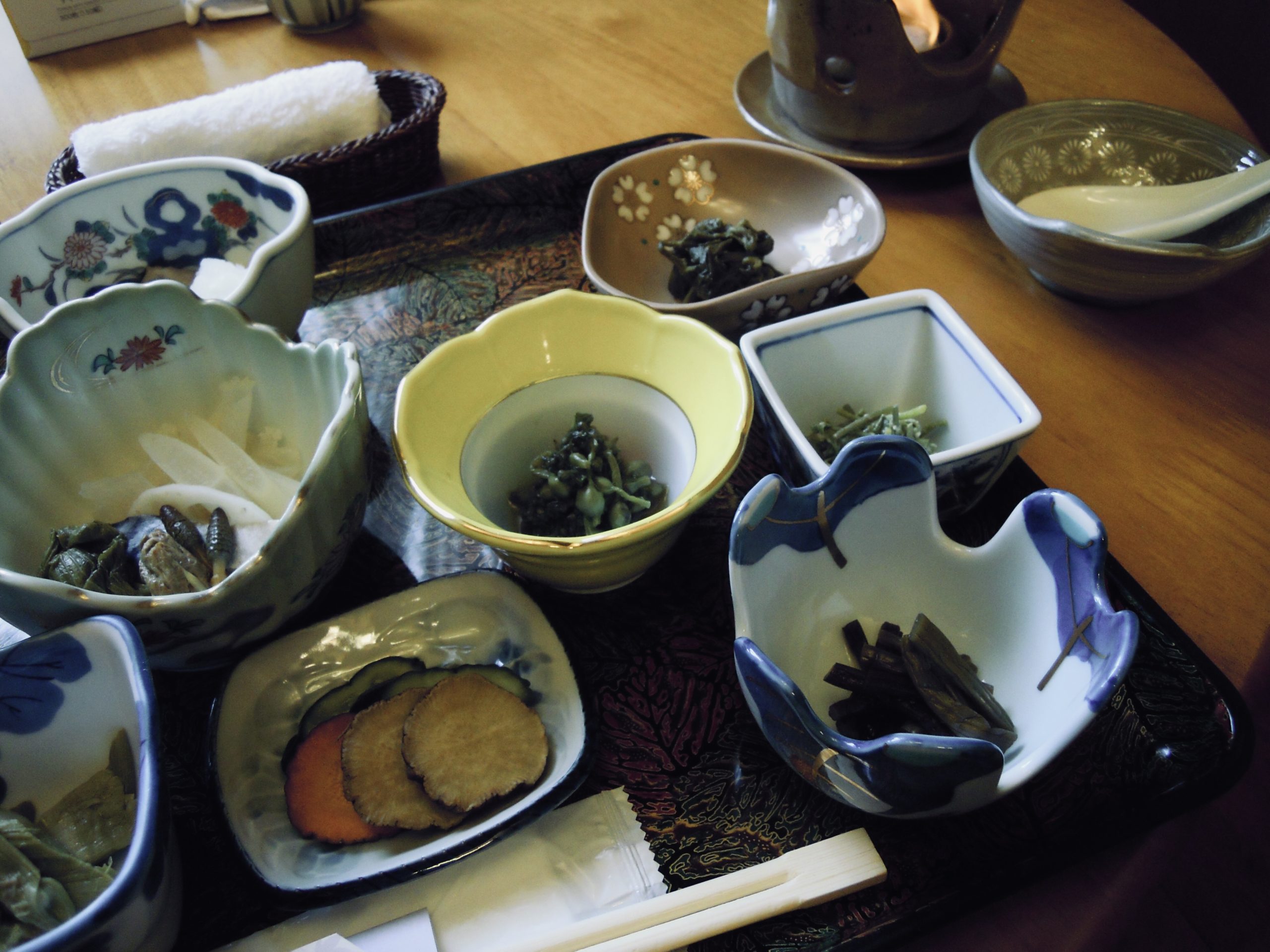夕食、朝食とも、山の幸たっぷりのお料理はどれも美味しかったです!山菜は、春に山で取れた分を塩漬けにして保存するそうですが、やはり山菜が1番美味しい季節は春との事です。秋はキノコ料理が並ぶそうです。美味しそう!