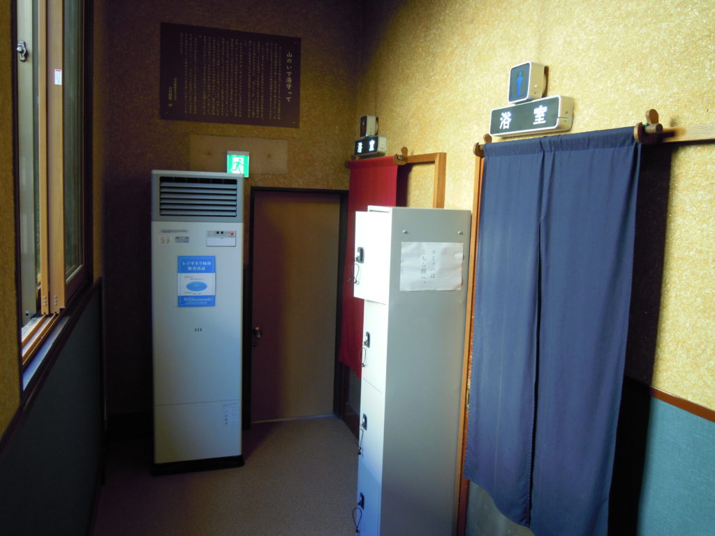 大浴場は廊下の突き当たりにあります。男女とも内風呂のみで、露天風呂はありません。大浴場前には、日帰り入浴客用のロッカーがあります。岩倉温泉さんでは日帰り入浴も可能です。入浴料金は400円です。