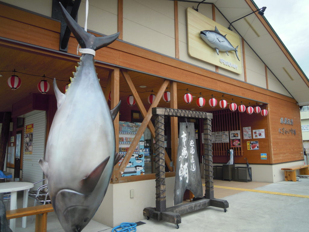 漁港には「にぎわい市場」があります。お土産の購入や飲食もできます。残念ながら火曜日はお休みでした。営業時間は8時〜16時までで、朝食やお弁当などもやっています。